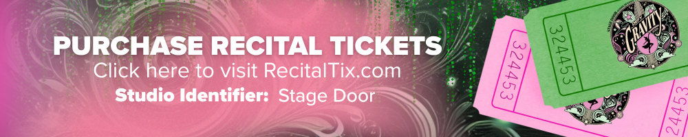 Studio Identifier: Stage Door (Please note: This is not the same as your recital ticket code, but you will need this to gain access to our ticket dashboard.)
