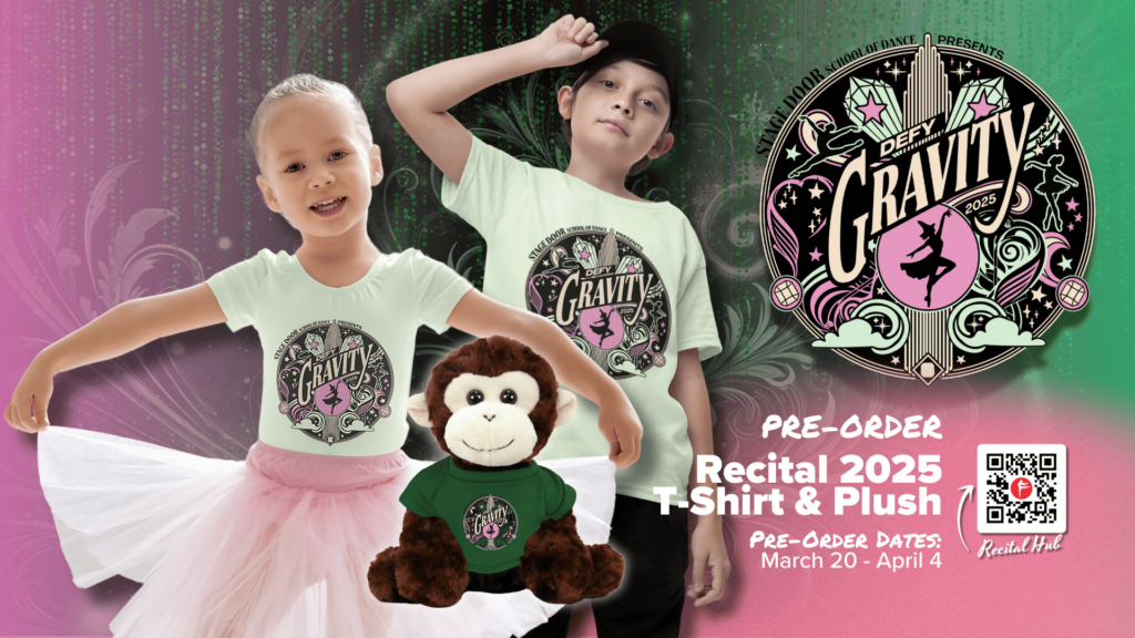 Get ready to ‘Defy Gravity’ and celebrate SDSD Recital 2025 with two must-have keepsakes! Our exclusive Recital T-Shirt and collectable Recital Plush Monkey—both featuring this year’s beautifully detailed recital logo—are now available for pre-order.