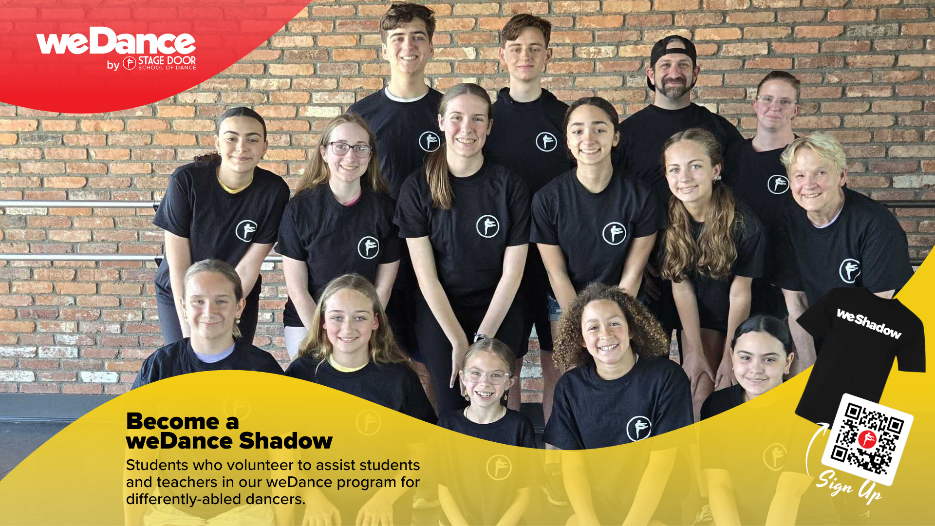 weDance Shadows are volunteer student assistants assigned to each individual weDance Dancer. Shadows work closely with each dancer to break down instructions and choreography, provide physical prompting or mobility, as well as assisting the teacher throughout the class.